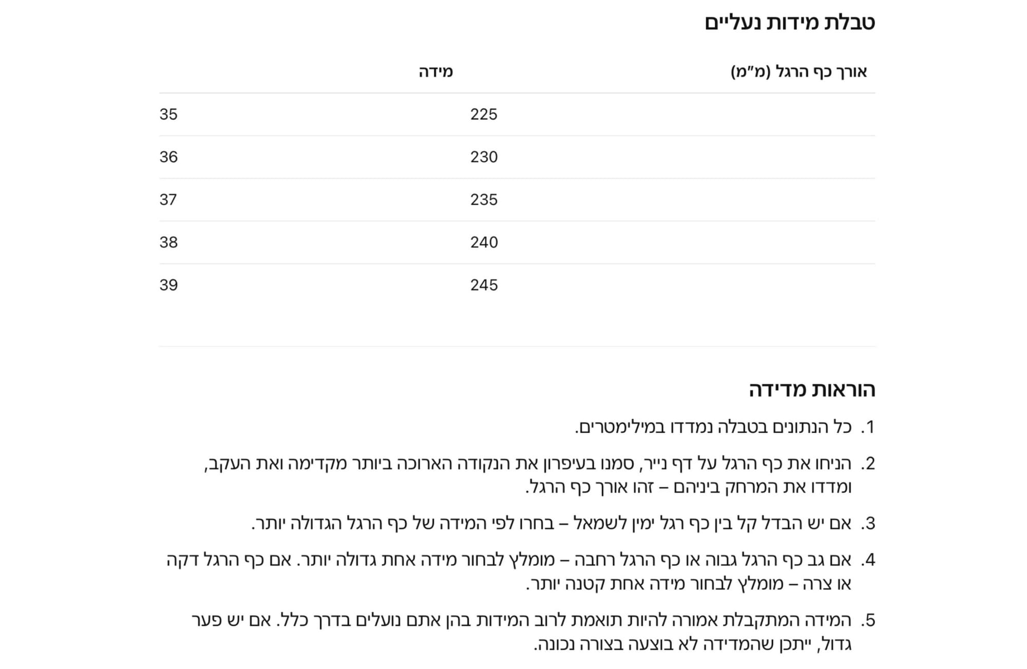 הפריט תואם את טבלת המידות ונחתך בהתאם לטבלת המידות שלנו. אנא עיינו בטבלת המידות שלנו להתאמה הטובה ביותר.