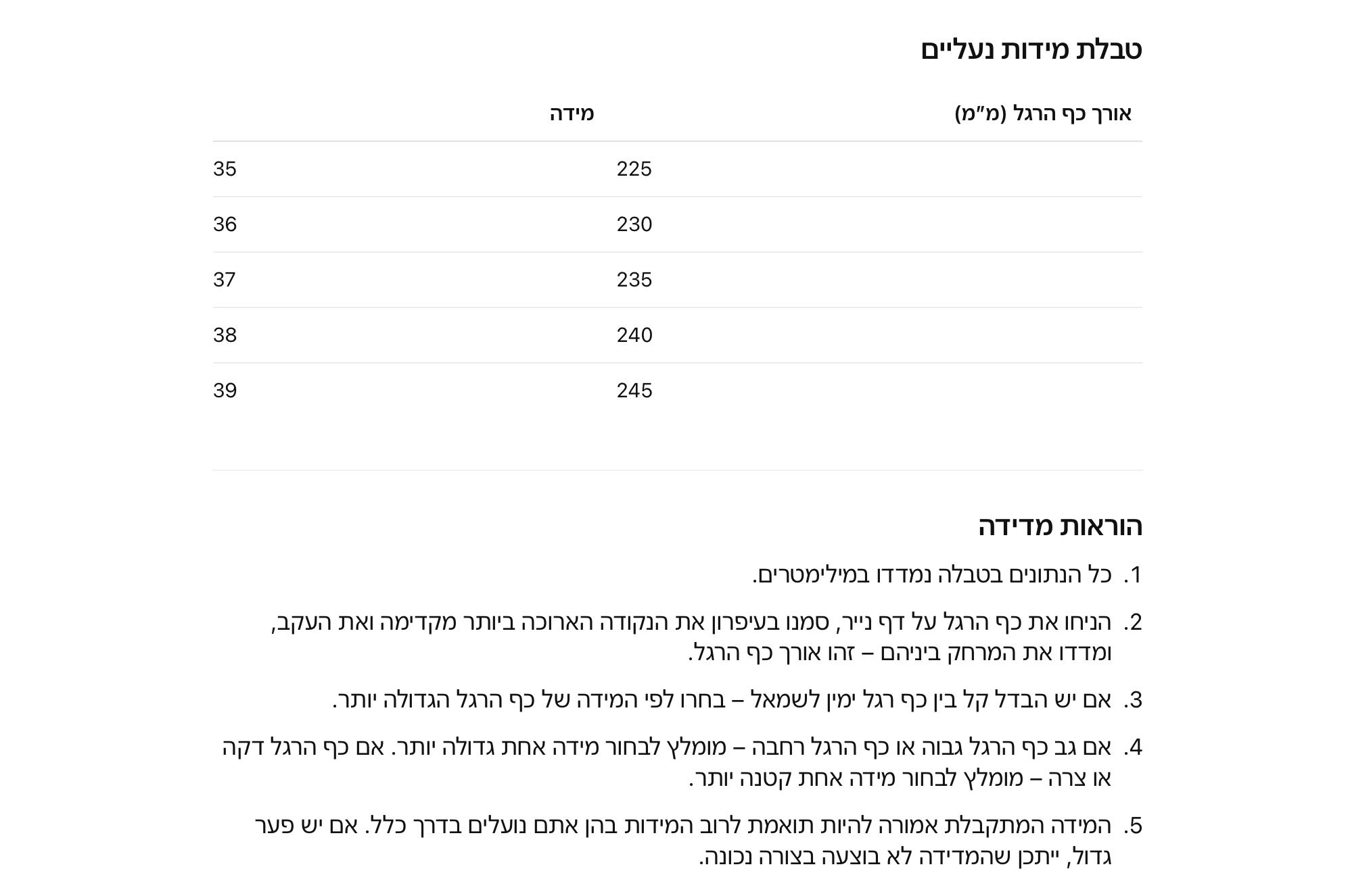 הפריט תואם את טבלת המידות ונחתך בהתאם לטבלת המידות שלנו. אנא עיינו בטבלת המידות שלנו להתאמה הטובה ביותר.