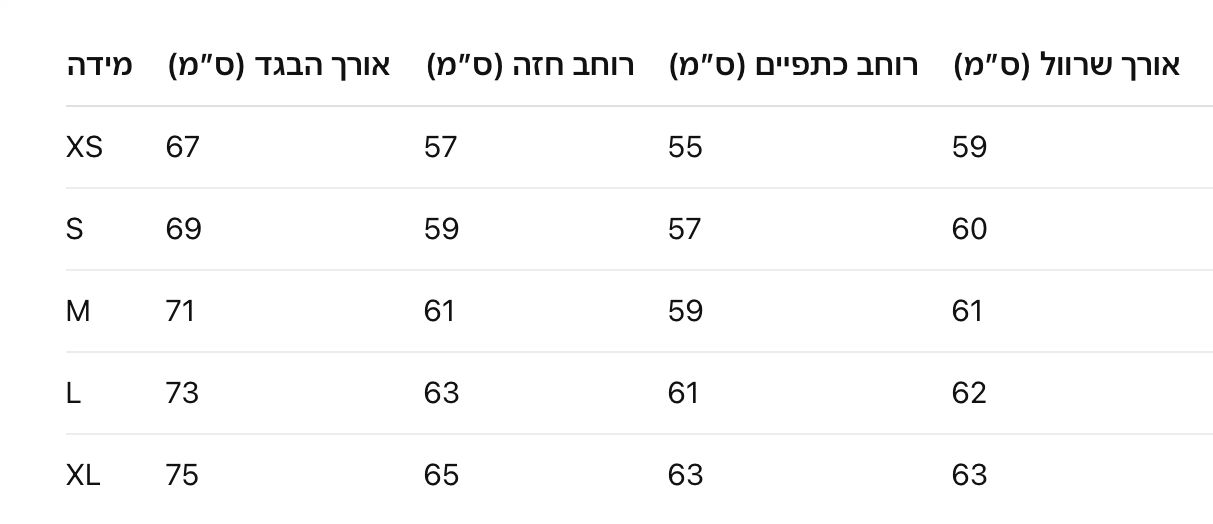 בגד באיכות 1:1 כמו המקור, עם לוגו מקורי ואריזה מהודרת. המוצר מגיע עם קופסה ממותגת, עשוי מחומרים איכותיים ובעל מראה יוקרתי ומדויק כמו במותג האמיתי. מתאים כמתנה מושלמת או להוספת נגיעה של יוקרה לכל הופעה. הפריט תואם את טבלת המידות ונחתך בהתאם לטבלת המידות שלנו. אנא עיינו בטבלת המידות שלנו להתאמה הטובה ביותר.